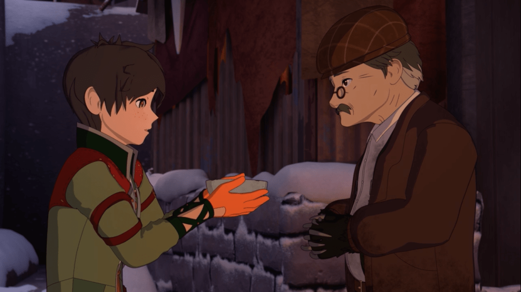 Next, we cut to our little soulboy Oscar Pine in the slums as he gets some soup from a badger Faunus. Oscar’s friends pick him up, but there’s no explanation as to how they found him, which of course. They meet Joanna Greenleaf, May Marigold, and Dr. Pietro Polendina at a hideout, and again, I’m not sure how they found it, but okay. They lay out a plan to save everyone in Mantle from the “largest Grimm force” they’ve ever seen (even though we barely see any of the monsters). Apparently there’s no heat and no military protection, but they don’t explain why those things are happening. They want to evacuate everyone to the slums, which is inside this big crater; that in itself is right beneath the floating city of Atlas. It’s like they’re begging Atlas to fall and squish everybody. Oh, and Oscar decides to not tell his allies about Ozpin’s return and the reawakening of his magic. You’d think he would be smart enough to avoid making the same mistakes as Ruby last season, which just goes to show how tiresomely illogical the show can be.