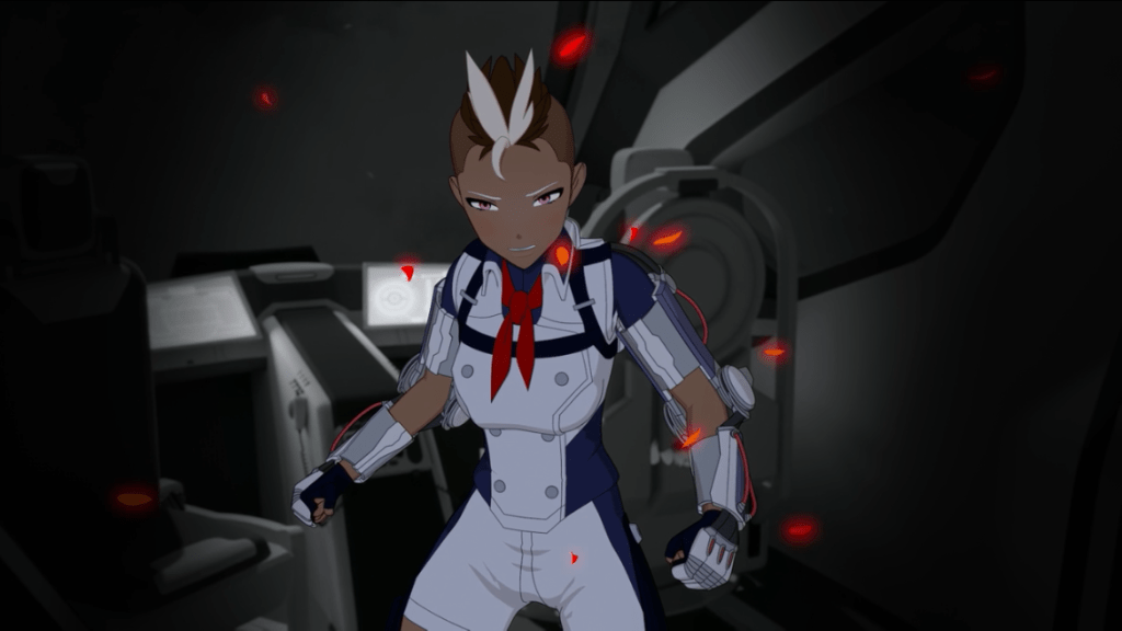 Back in the Ace Ops’ ship, Jaune takes a crack at persuading Winter to let him and his friends, suggesting they can do a test run and survey the whale for the Ace Ops, and in the process they’ll search for Oscar in the process. The Ace Ops think this is a stupid strategy, with Elm stating, “We don’t let feelings get in the way of making the right call. Trading three lives for one is stupid.” The thing is, Jaune’s idea is actually quite solid. And shouldn’t the Ace Ops be willing to do almost anything to rescue Oscar, considering he’s the bearer of Ozpin’s soul? Ren laconically expresses the care he has for him, which makes Harriet scoff, “Feelings don’t matter, the job matters.” Then Ren says, “No! No one is replaceable.” However, Neath Oum, Ren’s VA and the brother of RWBYcreator Monty Oum, didn’t put emphasis on the end of the line, making it sound off. I understand Neath isn’t a professional voice actor, but it nonetheless annoys me how clumsy his line readings can be. This also started a meme about Monty playing Ren for Volumes 1-3, then Neath replacing him for the rest of the show. So yeah, maybe Kiersi and Miles should have written a different line for Ren.