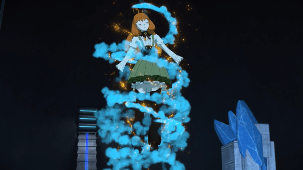 We return to the Vault, where Penny’s erstwhile robot body conks out in a startingly disturbing sequence. Honestly, I don’t know why the animators felt it was necessary to execute the death of Penny’s original body so gratuitously. Following this is the human Penny experiencing the warmth of hugs as she embraces Ruby and then the rest of the team, because yay for being a real girl. Then the group calls on Ambrosius again and asks him to open portals all across Atlas and Mantle that will take passengers into a pocket dimension resembling the cosmic spaces comprising each Vault. There, everyone will have to head for one gateway that goes into Vacuo. Once the team lays out the space-time nitty-gritty to Ambrosius and offers him the maps of Atlas and Mantle, he completes the task. I’m assuming it doesn’t eliminate Penny’s human body because of all that soul poppycock and how she was supposedly her own individual before Ambrosius intervened.